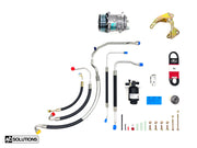 Our products are designed to support factory A/C models; however, they can be fitted into non-A/C applications, but you will need to obtain a factory HVAC wiring harness, high-pressure drier return line (64531381740), evaporator, aluminum engine accessory bracket (to mount our compressor bracket), and factory interior HVAC box with sensors, control module, thermostat, etc.