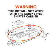 WARNING: THIS KIT WILL NOT WORK WITH THE EARLY STYLE SHIFTER CARRIER PLATE. YOUR E30 MUST USE THE SKINNIER SHIFTER CARRIER.