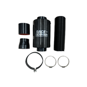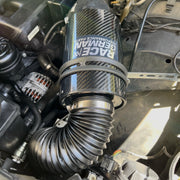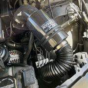 Because of this, we wanted to offer a universal, budget cold air intake that won't break the bank.  Our system uses a real carbon fiber cone air filter canister. By checking inlet air temperatures, we have seen drastic reductions in temperature. This kit comes with a large cushion clamp to go around the canister so you can easily mount it to various tabs or brackets in your engine bay.  We also include 10 feet of ducting in case you want to make a true ram air system to get the coldest temperatures possible.  Lastly, we include a silicone 3" or 3.5" coupler and a 3" to 2.5" reducer coupler to fit most applications.