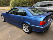 This square set of BimmerWorld 17x9.0 wheels for the E36, E46, F30, F32, Z3, and Z4 are a straight fit with minimal fitment hassle or interference issues. All four wheels are 17x9.0" ET42, which is the ideal width to run a 235, 245, 255, or some 265 width tires. These are wider than the stock E36 M3 or E46 330i wheels with a much larger footprint in the front to help reduce understeer. Sizes and offsets have been carefully chosen to fit within the stock bodywork with zero or minimal rubbing*. These are lightweight and strong alloy wheels at a great price for the set!