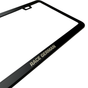 Etched with the Race German logo along the bottom edge, it showcases your passion for driving and detail without overpowering your car’s design. The slim profile ensures your registration stickers remain visible while giving your plate a refined finish.