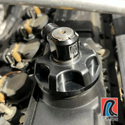 By using this cap design, you can leave the hose attached to your catch can and simply remove the cap to perform oil changes. The adapter has a smooth rotation, while keeping a liquid tight seal.