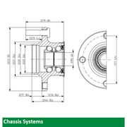 The wheel hub assembly is a highly integrated unit with flanges for the brake disc, wheel and knuckle, which allow the highest possible running accuracy. Integrated speed encoders generate the signals required for steering the vehicle (ABS/ESP). The bearing clamping force is applied and controlled via an orbital formed shoulder.