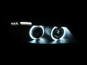 Projector Headlight Set, w/Halo, Clear Lens, Black Housing, Pair, CCFL, w/LED Bar, . Guaranteed To Improve Your Vehicles Appearance. Rigorously Tested For Fit And Function. Simple Plug And Play. No Modifications Required. Easy Installation Using Common Hand Tools. Uses Stock Mounting Locations And Hardware. D.O.T. Compliant To S.A.E. Standards. Sold As A Pair. 4Dr And Wagon Models Only. Does Not Fit Models With Factory HID Bulbs.