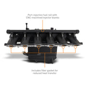 ----Insane power levels require equally insane amounts of fuel, so we've added provisions for port fuel injection, including a billet fuel rail and anodized aluminum injector blanks to cap the injector ports when not in use. Our precision-machined injector ports feature optimized geometry for the perfect mixing of air and fuel, with no drilling required. The included PTFE -AN fuel lines and fittings are suitable for ethanol and tee into the stock fuel lines. ----If cooling, flow, and reliability weren't enough, we also designed our charge air cooler to fit like stock. This kit includes brackets to keep your wiring tidy, a mount to fit the stock engine cover, and custom EVAP lines for a seamless installation. A convenient cutout in the plenum allows easy access to the oil filter without affecting flow. Like all Mishimoto products, this performance charge air cooler for the 2021+ BMW G80 M3 is backed by our Mishimoto Lifetime Warranty for a lifetime of exceptional performance. If you want the ultimate upgrade to squeeze serious power from your S58 engine, this Mishimoto charge air cooler manifold is for you.
