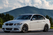 E9X non-M may need a small spacer in the front. Aggressive tire sizes may cause rubbing between tire and bodywork.