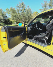We decided to create an OEM style replica made out of ABS plastic that will last a lifetime. These BMW E36 lightweight door card panel replacements are thermoformed from one piece of plastic. Our door panels are the highest quality and guaranteed not to rattle, shake, or fall apart. The panel features OEM styling so it does not stand out from the crowd. We wanted to create a lightweight panel replacement that looks like the original. The door pull is replaced with a lightweight nylon strap. The stock door handle trim can be installed as well.