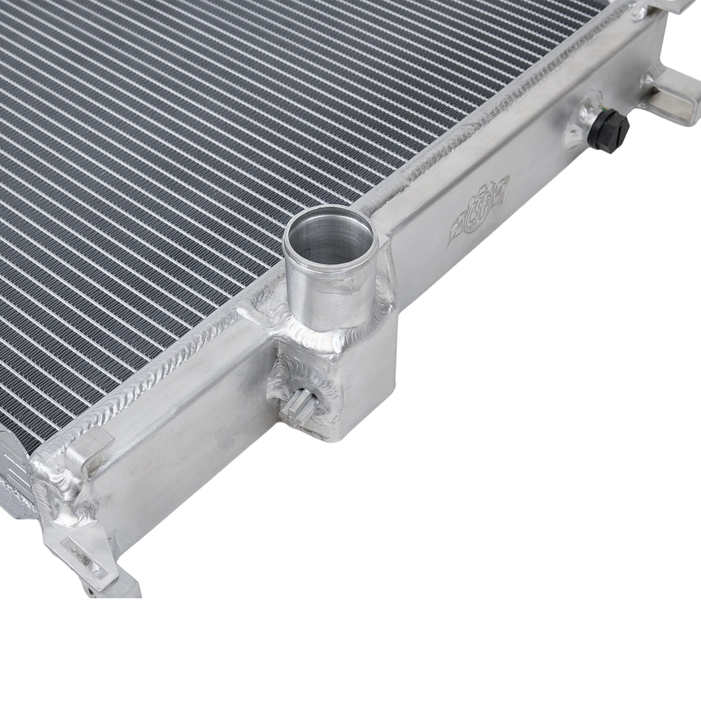 The 2-Row 42mm aluminum core offers the largest coolant capacity possible and incredible heat dissipation. CSF’s Exclusive B-Tube Technologyincreases the heat transfer by approximately 15% over regular oval welded tubes. In addition, the super-efficient multi-louvered fins maximize airflow through the core for the best possible performance. All mounting brackets are CNC Machined for precise fitment. The cooling inlet/outlet connections use E36 OEM style slip on connections.