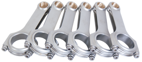Forged 4340 steel H-Beam connecting rods are forged from a two-piece forging and feature a fully machined and shot-peened surface. Sizing is held to exact tolerances. Sold as a weight-matched set. Equipped with ARP 2000 bolts for even more power-handling capability. Recommended for competition use.