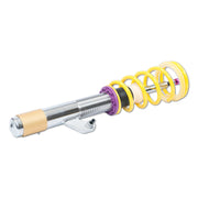 Is your factory sport suspension too firm? Do you want a sporty look and driving dynamics without having to compromise comfort? KW V2 comfort coilovers take the already stellar ride and reputation of KW suspensions coilover systems to the next level of comfort. Designed specifically to maximize comfort KW V2 Comfort coilovers provide a subtle lowering with adjustable ride height and rebound damping adjustability allowing the handling or the comfort to be individually tailored as desired via the integrated rebound adjustment knobs. KW V2 Comfort coilovers offer the perfect compromise of driving dynamics and ride comfort. With the KW V2 Comfort coilover kit, your comfort-oriented driving pleasure is the focus. That's why our test engineers evaluate the setups on numerous highways and country roads with various road surface types. The KW V2 Comfort coilover kits are suitable for all drivers who want to combine the joy of a decent lowering with driving comfort. With the 16-click adjustable rebound damping (TVR-A-technology), you can tune the KW dampers on the KW V2 Comfort coilover kits to make it more comfortable or sportier. The two-stage, patented TVR-A (Twin Valve Rebound - Adjustable) technology enables a small volume of oil to flow through an adjustable, conically shaped, low-speed bypass during low damper speeds, while in the case of higher damper speeds, the main rebound stage valve opens allowing a larger volume of oil to flow. This provides a big improvement in terms of ride comfort without influencing the safety-relevant high-speed range. There are 16 precise clicks available for individual settings, so you can choose between more comfort or more body control. The KW V2 Comfort coilovers, made using INOX-LINE stainless steel technology, enables a vehicle-specific lowering within the tested adjustment range of 10 to 40 mm.