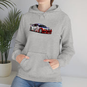 The E46 GTR came to life in February 2001, powered by the P60B40 a 3,997 cc V8 producing 493 hp. If that isn't enough to love this hoodie, I don't know what is. This sweatshirt features one of the most iconic liveries on the BMW E46, "Merica."