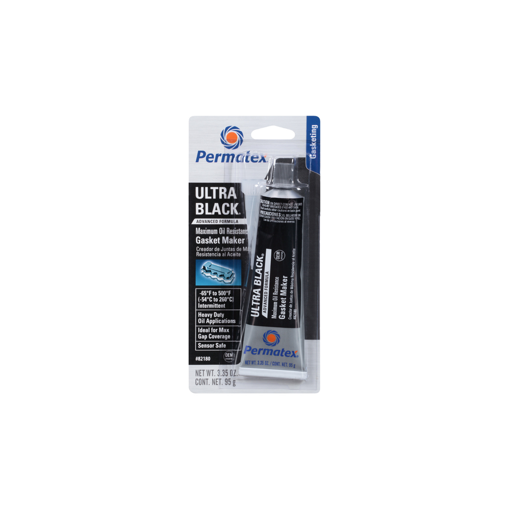 3.35 oz. tube, carded - OEM specified. For dealership warranty requirements, Ultra Black® ensures extended drivetrain warranty compliance. Fast-curing formula.